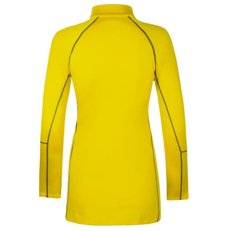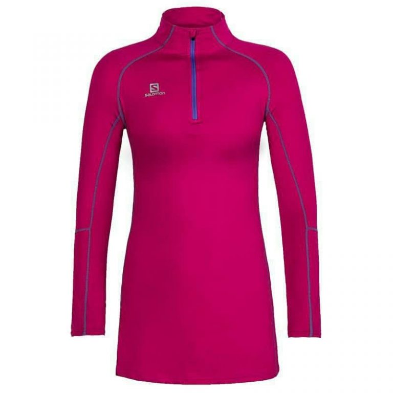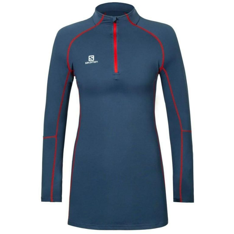 بلوز زنونه سالومون (هایکپی) ۲۰۲۰ دارای نیم زیپ در قسمت جلویی یقه ایستاده مانع از دست رفتن گرمای داخلی و پوشش کامل ایجاد میکند. قابلیت خشک شوندگی سریع دارای حالت تنفسی با خشک شدن سریع مانع از عرق سوزی می شود